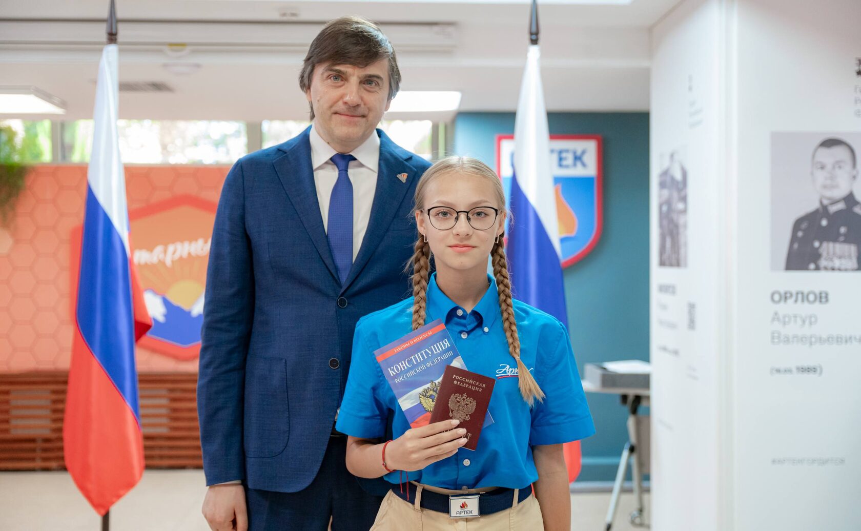 В ознаменование 100-летнего юбилея международного детского центра «Артек» 108 подростков со всех уголков России получили паспорта из рук видных государственных деятелей — Сергея Кириенко, Дмитрия Чернышенко, Сергея Кравцова и Леонида Слуцкого.